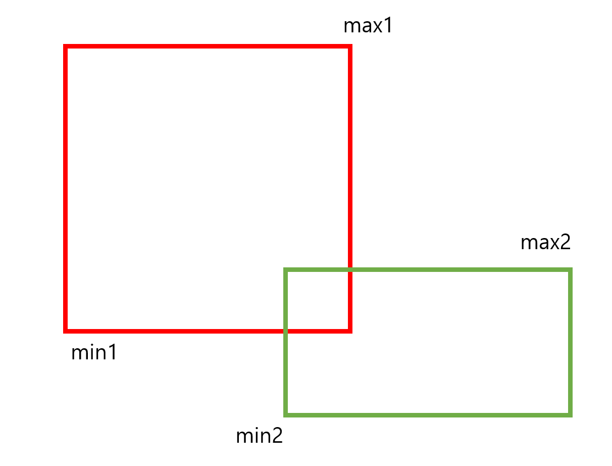 - 빨간 AABB의 min.x 값보다 초록 AABB의 max.x 값이 작다.