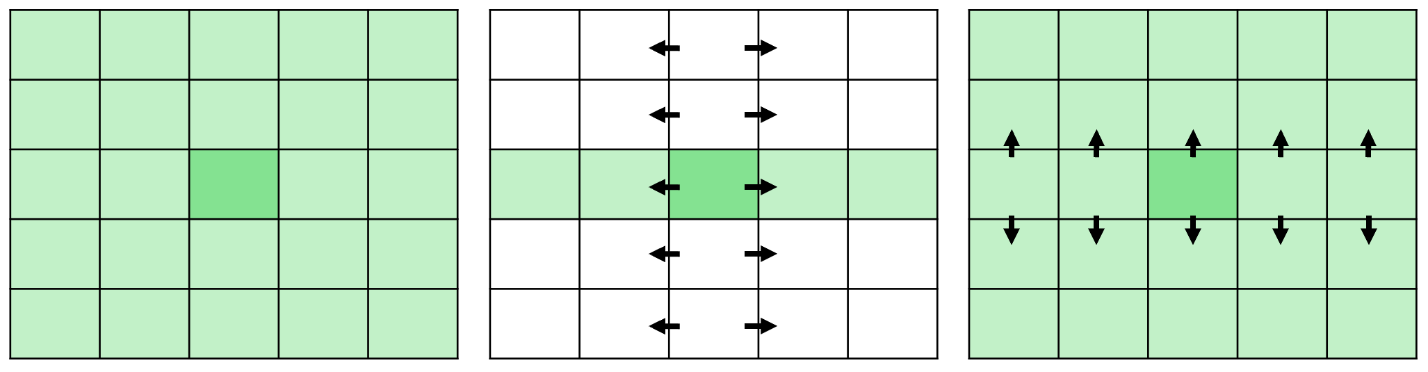 중앙에 있는 이미지는 5 크기의 필터를 이용해 가로로 블러처리한 것을 표현한 이미지입니다.