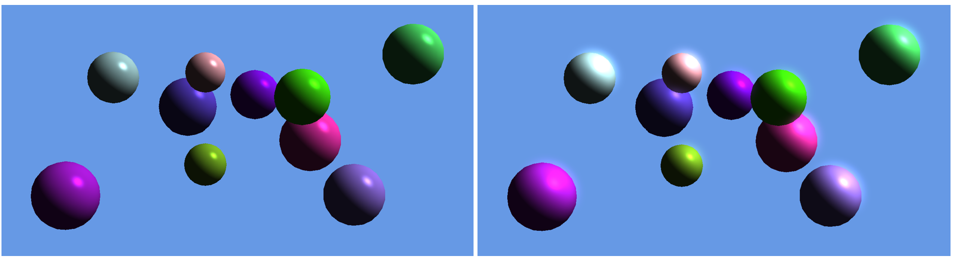 첫 번째 Pass는 Render Original Scene Pass로 구체들을 기본적인 Phong Shading으로 렌더링하는 것입니다.