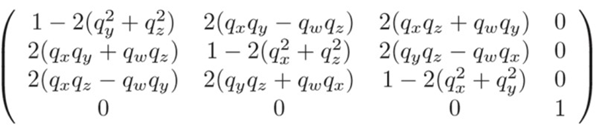 쿼터니안 연산은 쿼터니안의 곱셈 규칙만 잘 유의한다면 행렬곱으로 표현가능합니다.
