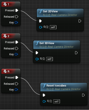 각각의 함수는 멤버 변수인 playerController의 SetViewTarget() 함수를 camerObj를 인자로 주어 호출하므로써 구현했습니다.