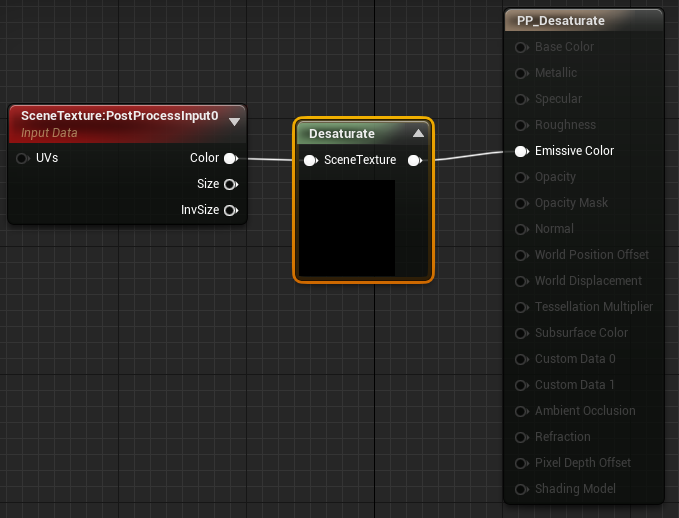 Desaturate를 구현하는 과정은 매우 간단합니다. 위 이미지처럼 2개의 Node만 추가하면 됩니다.