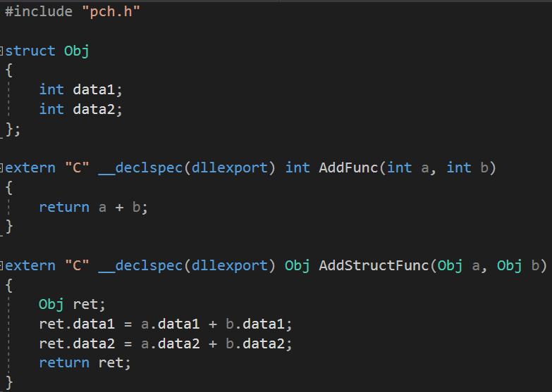 AddFunc 함수와 AddStructFunc 함수는 내부에서 DLL 함수를 호출할 것입니다.