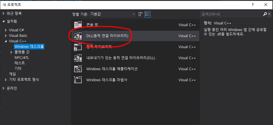 Visual Studio를 이용해 Project를 만들 때 아래 이미지처럼 DLL 형식으로 만들면 됩니다.