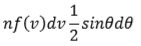 모든 방향을 고려하기 위해선 θ가 0도부터 90도까지 변화하여야 하며, 모든 속력을 고려하기 위해선 0부터 무한대까지 적분해야 합니다. 즉 위의 합은 아래의 적분식으로 대체됩니다.