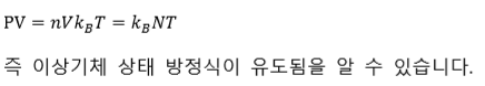 즉 이상기체 상태 방정식이 유도됨을 알 수 있습니다.