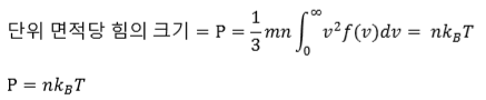 dt의 시간동안 공기 입자가 충돌하여 벽에 전달되는 단위 면적당 힘의 크기, 즉 압력은 아래와 같이 더 간단 히 정리됩니다.