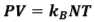 이 식의 n은 단위 부피당 입자의 개수이고, kB는 볼츠만 상수이므로, 입자의 개수가 같을 때 단위부피내에서 온도와 압력은 비례한다는 이상기체 상태 방정식과 같은 의미를 갖습니다. 양변에 부피 V를 곱해보겠습니다.