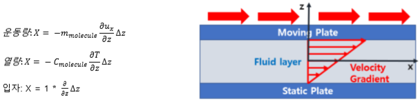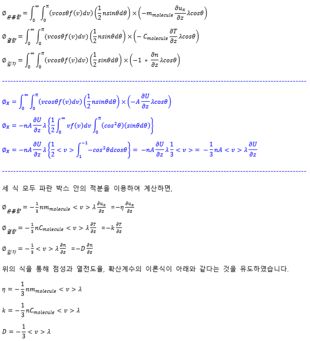 3. 점성, 열전도율, 확산계수 이론 식 유도.