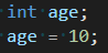 age라는 int 변수를 생성하고 값을 할당합니다.