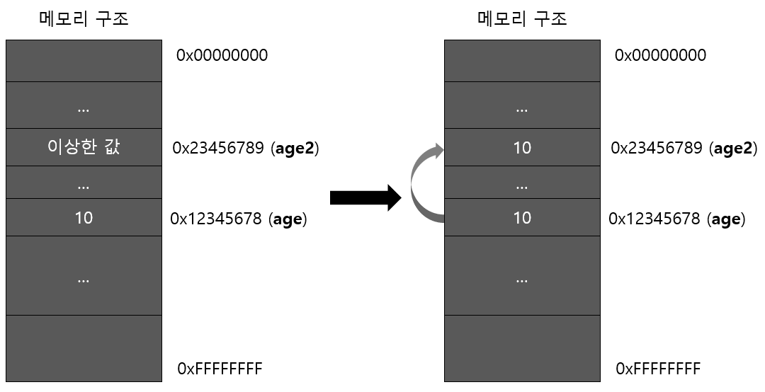 *다시 한 번 말씀드리지만 이미지는 의미를 전달하기 위해 표현한 것이지 실제 메모리 구조와는 다릅니다.