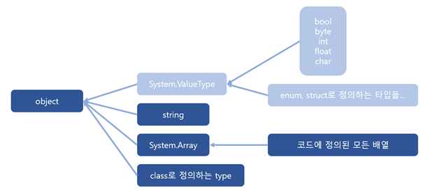 몇 가지 혼동될 수 있는 부분을 언급하자면 System.ValueType와 System.Array 자체는 abstract class로 정의되어 있기 때문에 이 타입으로 변수(객체)를 만들 수는 없습니다.