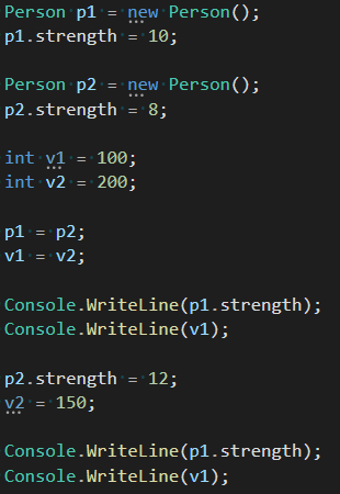Person person; 구문부터 보면 Value Type 변수를 생성하는 것과 차이가 없습니다.