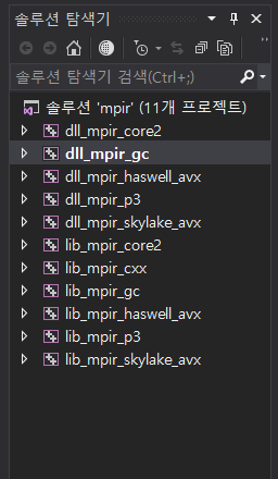 각각의 프로젝트 중 아래 그림처럼 Document를 확인하시고 필요한 프로젝트를 Release/debug, x64/x86을 맞게 설정한 뒤 빌드하시면 됩니다. 저는 lib_mpir_cxx을 빌드하였습니다.