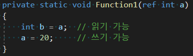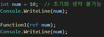 ref로 보내는 변수의 경우 초기화를 생략할 수 없으며 함수 내부에서는 읽기와 쓰기 모두 가능합니다.