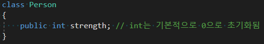 person1.strength가 0으로 출력되는 이유는 Person Class에 따로 생성자를 두지 않았고
