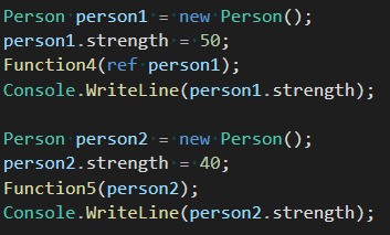 여기서 중요한 것은 person1은 Function4 함수가 호출된 후 함수 본문의 영향을 그대로 받았고