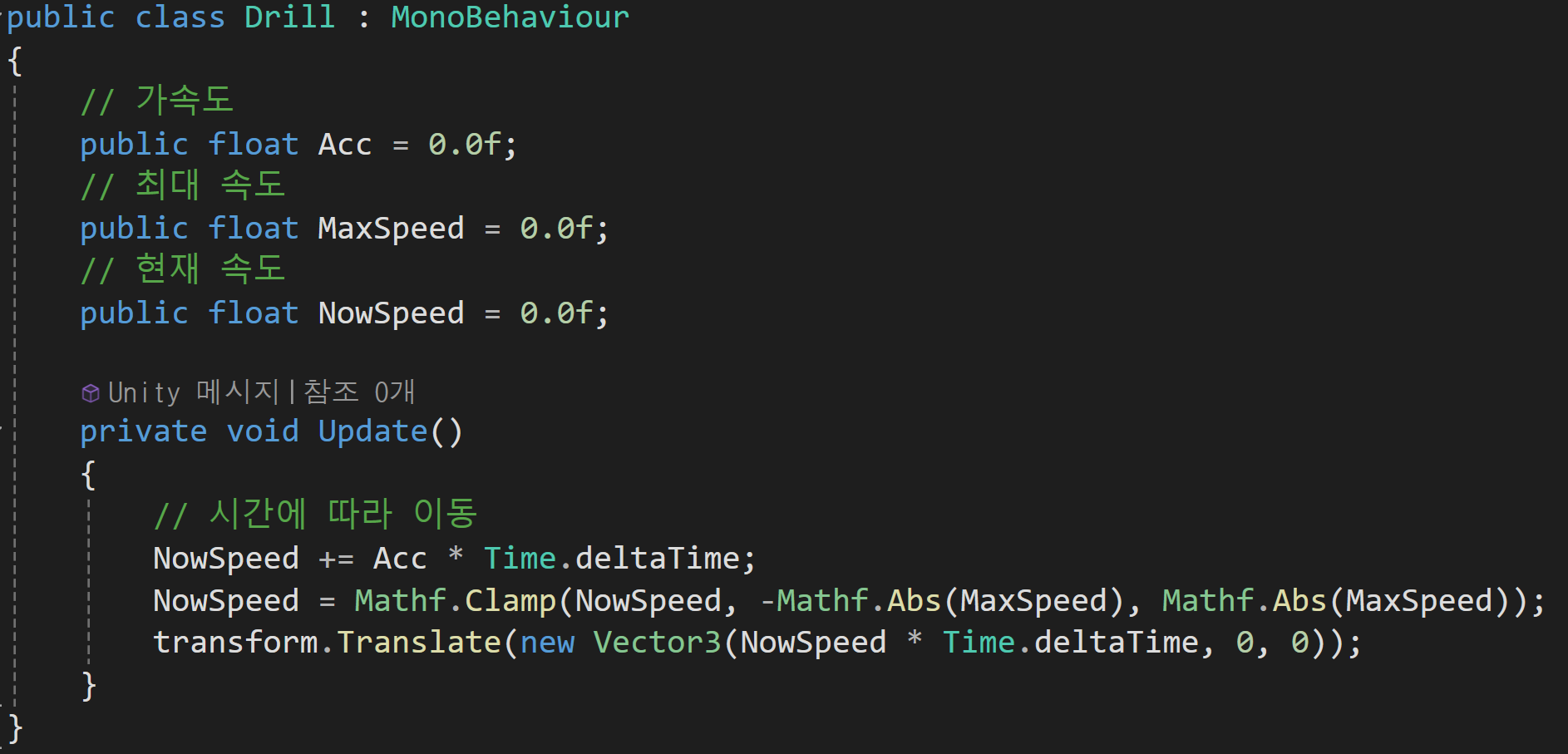 기획자는 Drill의 회전 속도를 조절하고 싶을 것이고, 그렇다면 프로그래머는