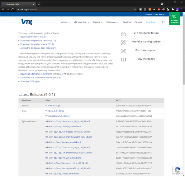 현재(21년 06월 24일 기준) 최신 버전은 9.0.1 버전이고 이 버전으로 빌드해보도록 하겠습니다. 맨 위에 Source에 있는 VTK-9.0.1.tar,gz를 다운받아 줍니다.