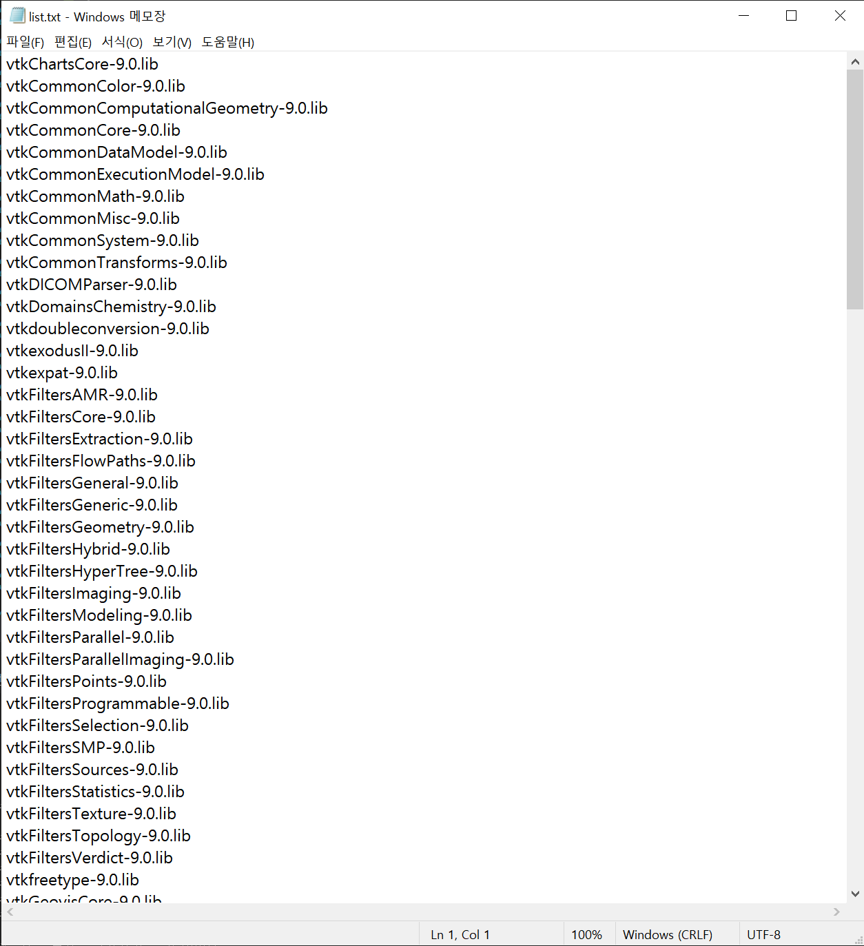 FlowTo.ai 2021. 6. 25. 15:13이전 포스팅에서는 VTK Library를 다운로드 받고 빌드하여 .h, .lib, .dll 파일을 생성하는 법까지 알아보았습니다.